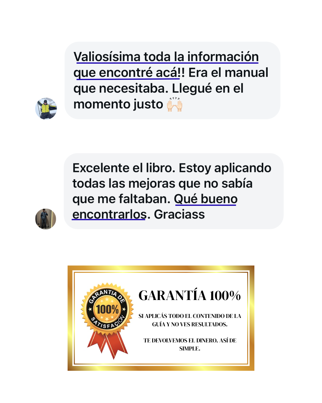 Garantía de 7 días: sabemos que no va a pasar, pero si no conectás con el contenido o no te aporta valor, te devolvemos el dinero.